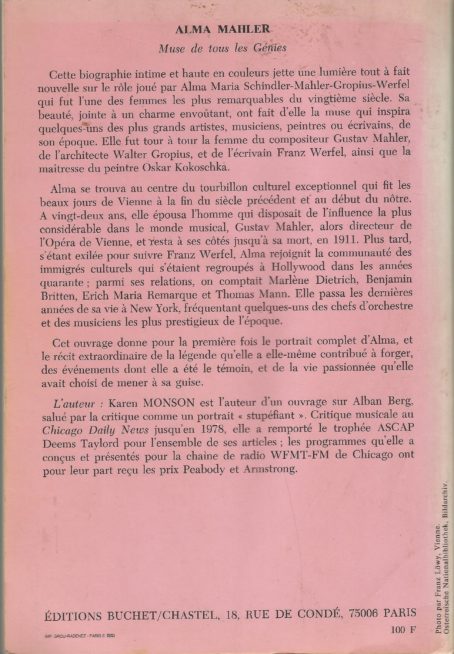 Alma Mahler, muse de tous les génies, de la Vienne fin de siècle à l’Hollywood des années quarante, par Karen Monson