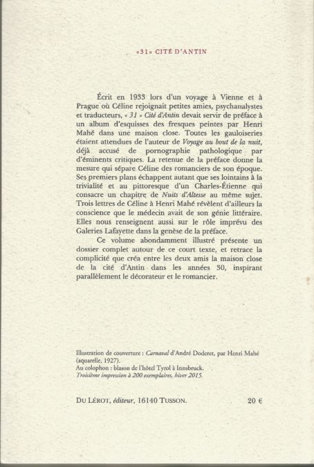 Céline – “31” Cité d’Antin. Etats successifs du texte présenté par Eric Mazet