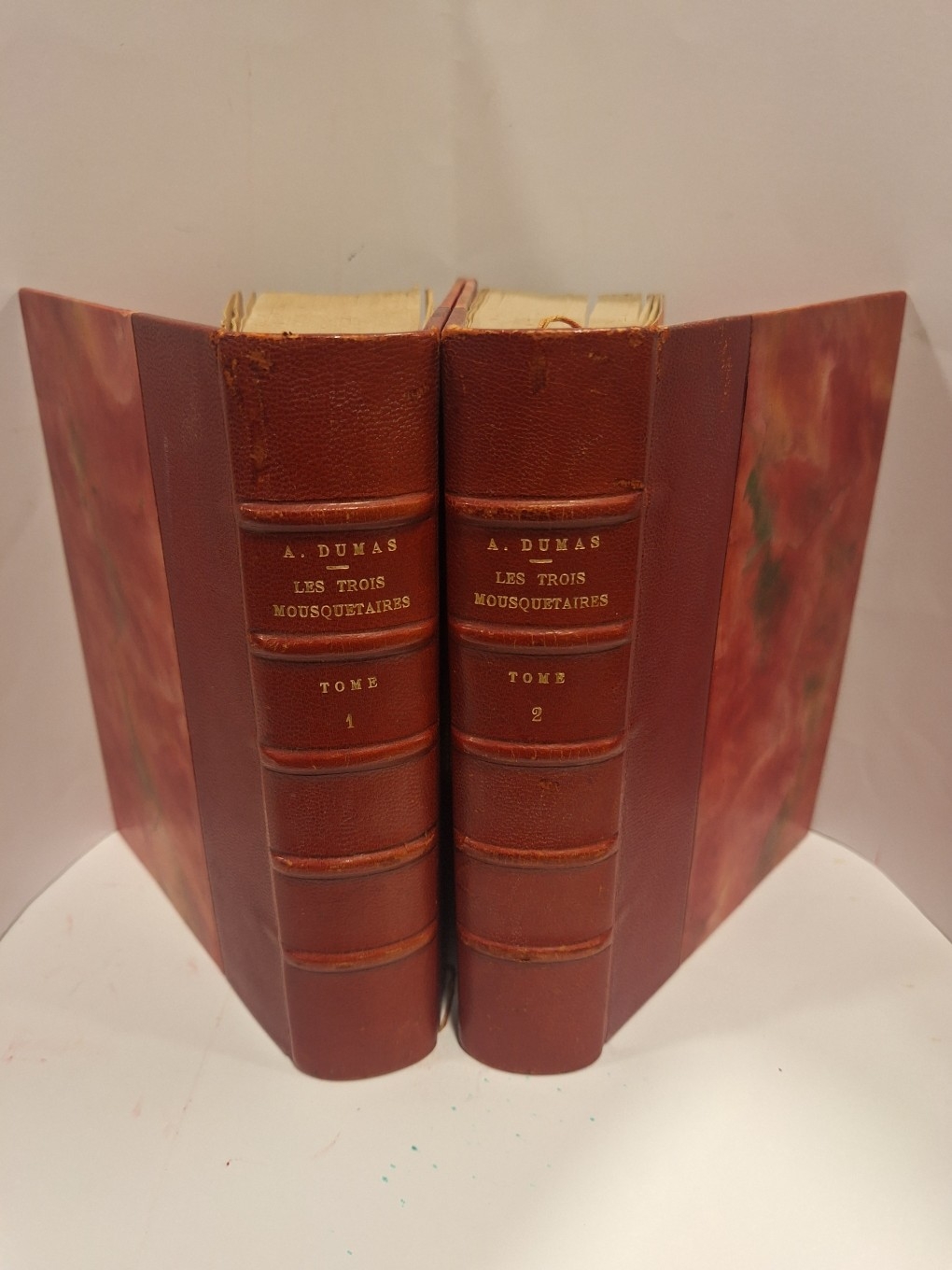 - Curiosité bibliophilique : La préface du Tome 1 a été reliée à l’envers. Ce genre de “coquille” de relieur est fréquent dans les reliures à la demande de l’époque et constitue une particularité amusante pour le collectionneur.