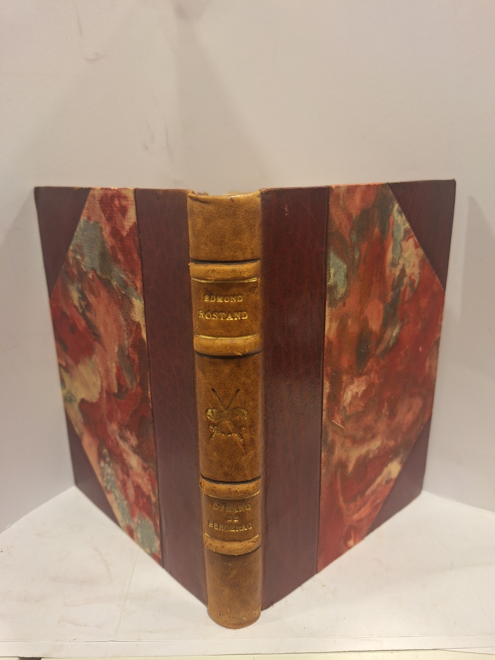 Reliure demi-basane à coins bordeaux, dos à nerfs, couverture conservée.